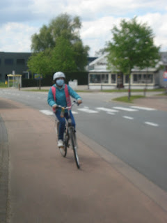 In groep verkennen we het hele parcours voor het fietsexamen van vrijdag.
